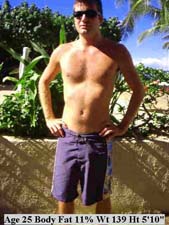 In the pictures on this page you will notice that the lean body types for men are in the 11-15% range. For women 18-24% body fat is desirable. Being very lean is the best way to promote longevity. An extra 10 pounds can age us dramatically in appearance and also promotes disease later in life. The book "Lean Genes" shows you how to set the goal of "lean" and reach a healthy BF% in the shortest possible time. |