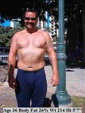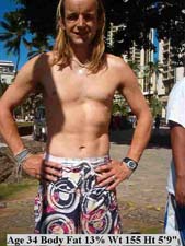 This is a very active surfing instructor using a low calorie diet and intensive exercise. The “Lean Gene Diet” brings leanness "faster" and "easier" than any other diet. Over 95% of dieters in America fail in reaching their goal or maintaining their weight loss yet most blame themselves. The book "Lean Genes" explains why it is the diet's fault. |